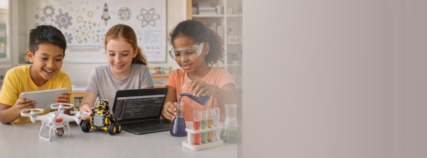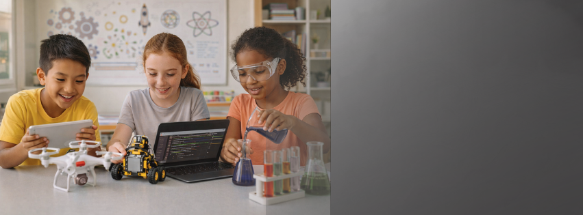 Students build, code, and experiment while developing creativity, teamwork, and problem-solving skills.